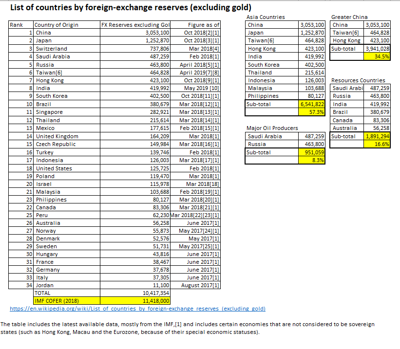 From 2000 to 2018 , China accumulated a trade deficit of US$8 trillion with raw material countries and producers of high-tech products ( see Annex 5: China’s import and export trade ) , which means that countries with trade surpluse with China earned foreign exchange from China and deposited it mainly in US dollars. China’s foreign exchange reserves also come from trade surplus with the United States. In one word, the bulk of foreign exchange reserves outside China and Japan is contributed by China’s purchasing power. Therefore, the so-called petrol dollar is no longer true. Countries with foreign exchange reserves together should work out a plan for the new global trade settlement and reserve currency.