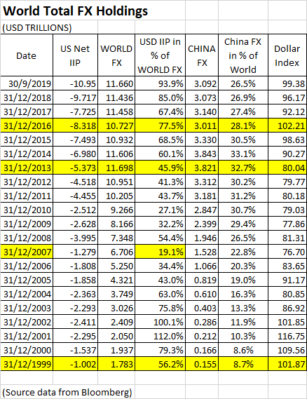 Financial capital inflows into the dollar are unstable sources of funding and the rising foreign exchange reserves is the cornerstone of dollar stability. The U.S. net foreign debt accounted for 19% of global foreign exchange reserves in 2007, and today it’s 93%. (see Annex 6: Global Foreign Exchange Reserves vs. Net Foreign Debt of the United States).